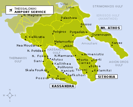 _ Halkidiki este o peninsula, aflata in partea de sud a orasului Thessaloniki. Halkidiki este formata din trei brate: Kassandra, Sithonia, Athos. Kassandra este cel mai vestic brat, fiind si cel mai aproape de Thessalonik; este cel mai popular si cel mai locuit. Este recunoscut pentru plajele sale de nisip si stancoase, prin padurile intinse. Aici sunt numeroase hoteluri, taverne, discoteci, baruri, facilitati pentru sporturi nautice motorizate si nemotorizate. Sithonia este bratul din partea centrala. Este o imbinare de nou si vechi, de mare si pamant. Sunt numeroase hoteluri afla de-a lungul coastei, baruri, restaurante, posibilitati de petrecere a timpului liber. Athos, este cel de-al treilea brat, locuit in exclusivitate de calugari. Este acoperit de intinse terenuri de paduri de pin. Accesul este permis numai barbatilor. Tarife 2026