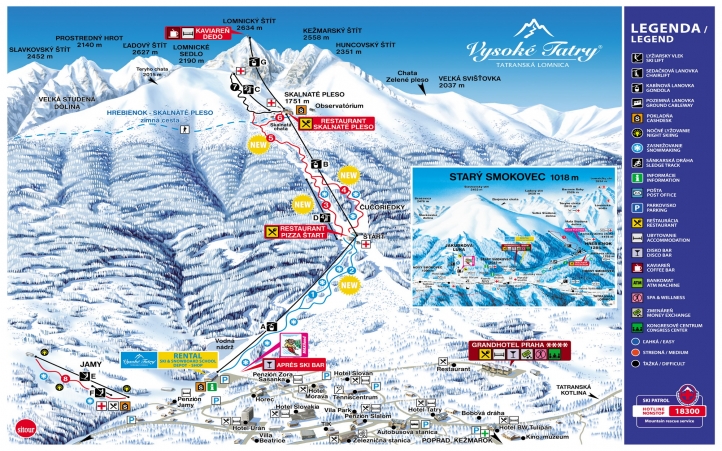 Informatii utile statiuni Statiunea Tatranska Lomnica - In vestul statiunii se afla centrul de schi Jamy, recomandat pentru schiori incepatori si intermediari. Al doilea centru de schi , Skalnate Pleso-Lomnicke Sedlo, se adreseaza in principiu schiorilor avansati. Atinge 2200 m altitudine, accesul fiind facilitatat de 2 telecabine pornind din apropierea hotelurilor. Tot de aici porneste telegondola spre vf. Lomnicky (2632 m) de unde se deschide o panorama superba spre varfurile invecinate. Partii: lungime totala a partiilor: 11 km Partii pentru incepatori (3 partii): aproximativ 25% din totalul de partii sunt albastre. Partii pentru intermediari (4 partii): cei mai multi km de partii sunt pentru cei cu nivel mediu (40% din totalul partiilor), dintre care cea mai lunga este de 4800 m. Partii pentru avansati (1 partie): aceasta reprezinta 35% din totalul de partii si este potrivita pentru cei mai experimentati schiori. Partiile sunt deservite de o telegondola (avand o statie si pe sectiunea mediana a traseului), un telescaun de 2 locuri (care urca pana la cel mai inalt punct al versantului, pe Saua Lomnic) si o telecabina veche (urca pe vaful Lomnic, dar de aici nu se poate cobori pe schiuri). Pe partea superioara a regiunii (Saua Lomnic) gasim o partie extrem de grea (neagra), de unde se poate cobori pe mai multe variante pana la statia inferioara a instalatiei. Este o partie populara, din cauza care deseori se formeaza coada la telecabina, dar multumita situarii centrale, se poate ajunge usor in statiunile invecinate: Zdiar, Krompachy, Zakopane, Svit, Strbske Pleso sau Stary Smokovec. Statiunea dispune si de o partie destinata incepatorilor, Jamy, care este deservita de doua teleschiuri, cu lungimi de 190, respectiv 470 m, dotate cu instalatie nocturna. In apropiere mai gasim 3 piste scurte de schi fond si trasee marcate pentru ture de iarna. Pista pentru sanius are o lungime de 2,6 km si este gratuita o data cu achizitionarea skipass-ului (pana la ora 16:30). In fiecare zi de marti, vineri si sambata, partia este deschisa si noaptea (19:00 - 21:00). Ski pass Tatranska Lomnica(tarife aproximative): 6 zile | Adulti | Seniori/ Juniori | Copii (6-12 ani) | Top Season | 156 | 125 | 109 | High Season | 126 | 101 | 88 |