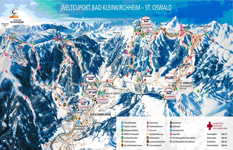Regiunea Bad Kleinkirchheim este una din cele mai importante din Austria datorita partiilor de schi excelente, a bailor termale si aquaparcurilor. In aceasta zona se gasesc cele mai lungi partii de ski din toata regiunea Carinthia, fiind incluse si cateva partii competitionale, omologate FIS Zona Bad Kleinkirchheim, ofera 102 km de partii, pentru toate nivelurile de schiori, precum si partii pentru schi fond, pentru care sunt amenajate 8 km piste conectate cu cele 45 km din Gnesau, Ebene Reichenau si 5 km de piste de schi fond la altitudinea de 1870m. Instalatiile transporta schiorii si snowboarderii intre 1350-2000 m. Oferte speciale si Last minute schi Austria click aici.