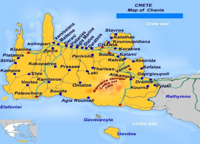 Chania este una dintre cele mai dorite destinatii ale turistilor care viziteaza Grecia si care sunt captivati de stilul traditional al satelor si puritatea mediului inconjurator. Regiunea Chania, situatia in vestul Cretei, ocupa un loc important in istoria Cretei. Istoricii spun ca Chania a fost locul exact in care a existat infloritorul oras minoan al Kydoniei. In afara de orasul Chania, intreaga regiune va va lasa fara rasuflare. Plajele nisipoase, satele de mute, hamacurile de pe plaja, natura pura, manastirile bizantine rasfirate de-a lungul insulei, toate creeaza un fanstactic fond de explorari.Chania are una dintre cele mai rare vegetatii din Grecia si atrage multi iubitori ai naturii. In afara de orasul pitoresc Chania, aceasta zona a Cretei are multe sate de munte superbe si asezari pe malul marii. Kissamos, Paleochora si Sfakia sunt dintre cele mai renumite. Toate au reusit sa scape de turismul in masa si sa-si pastreze autenticitatea. Alte informatii utile - Creta: Heraklion, Chania, Rethymno